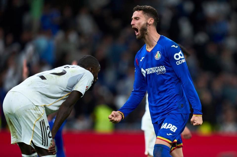 在顶住皇马的进攻之后,赫塔菲反客为主取得领先。第39分钟,萨特里亚诺大禁区边缘一脚精彩凌空抽射敲开了把守的球门,皇马主场0-1落后。下半场,阿韦洛亚调兵遣将,、等人纷纷披挂上阵。第62分钟,吕迪格禁区内倒地,主裁判没有理会。比赛的最后时刻,维尼修斯着急拉扯对手受伤倒地球员,结果被主裁判黄牌警告。1分钟后,马斯坦托诺怒喷裁判被直接红牌罚下。而在伤停补时第7分钟,利索在裁判鸣哨后踢走皮球,结果吃到第2张黄牌也被红牌罚下。最终,皇马主场0-1失利。